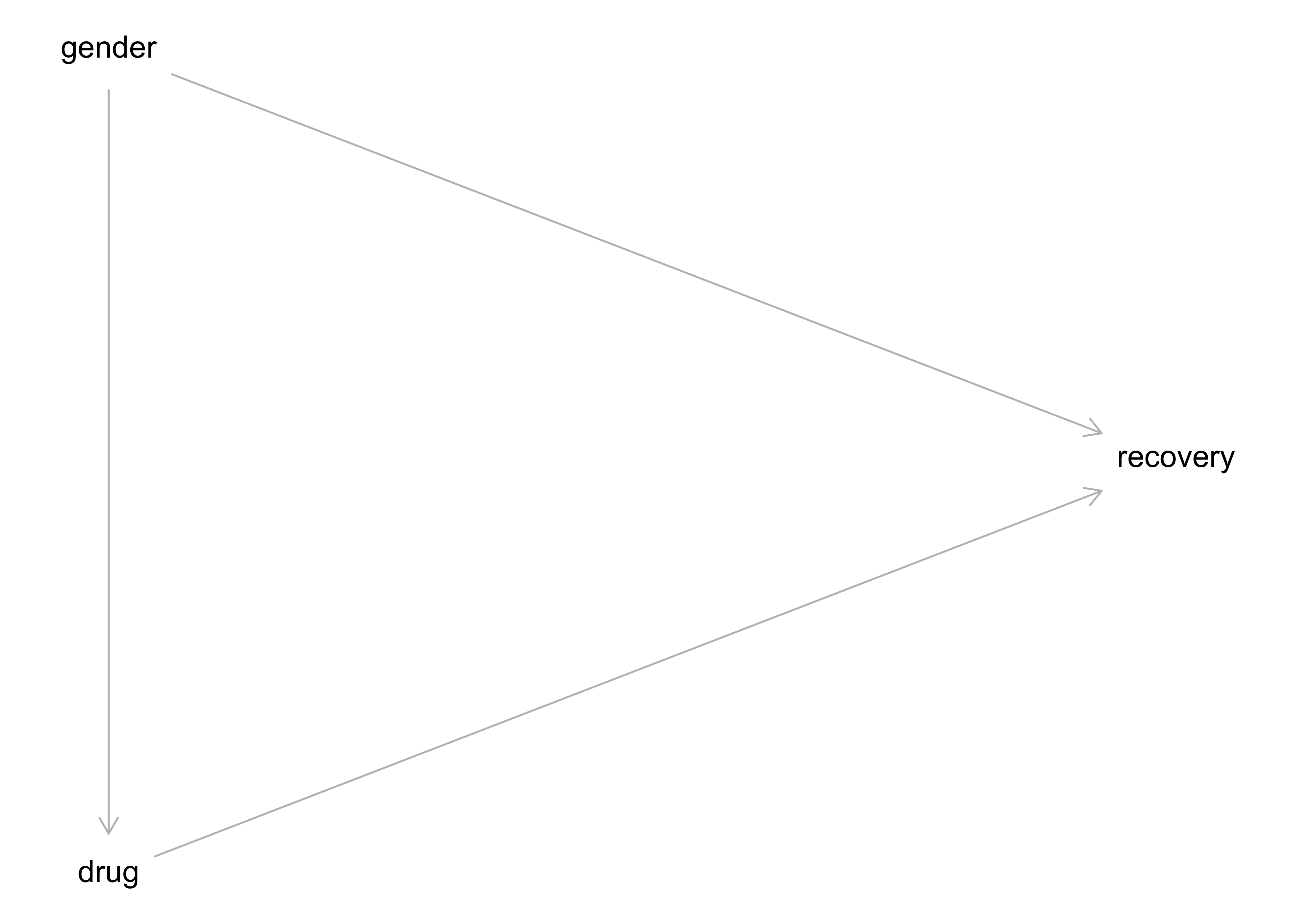 Betrachtung der Gesamtdaten zeigt in diesem Fall einen konfundierten Effekt: Geschlecht konfundiert den Zusammenhang von Medikament und Heilung.