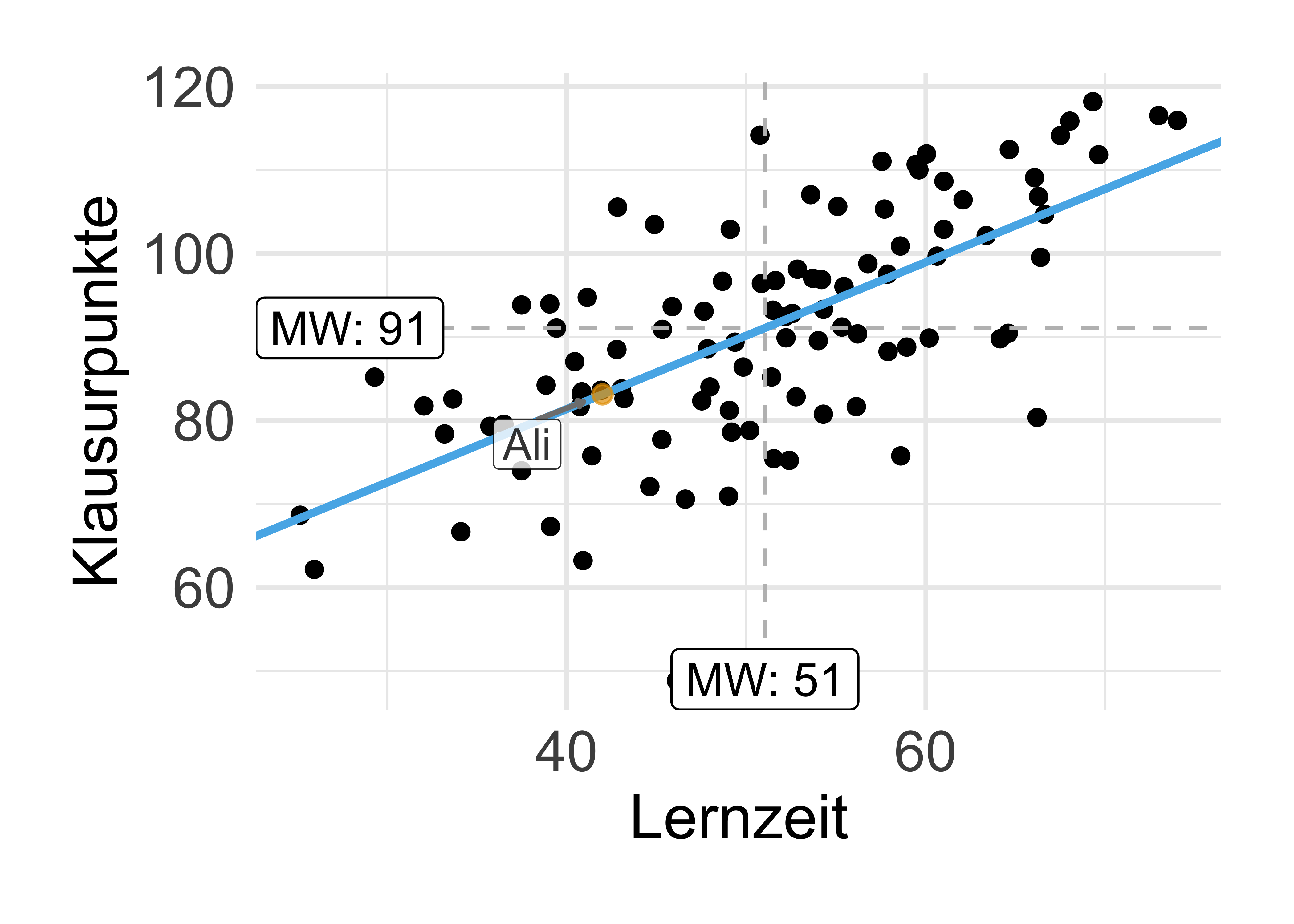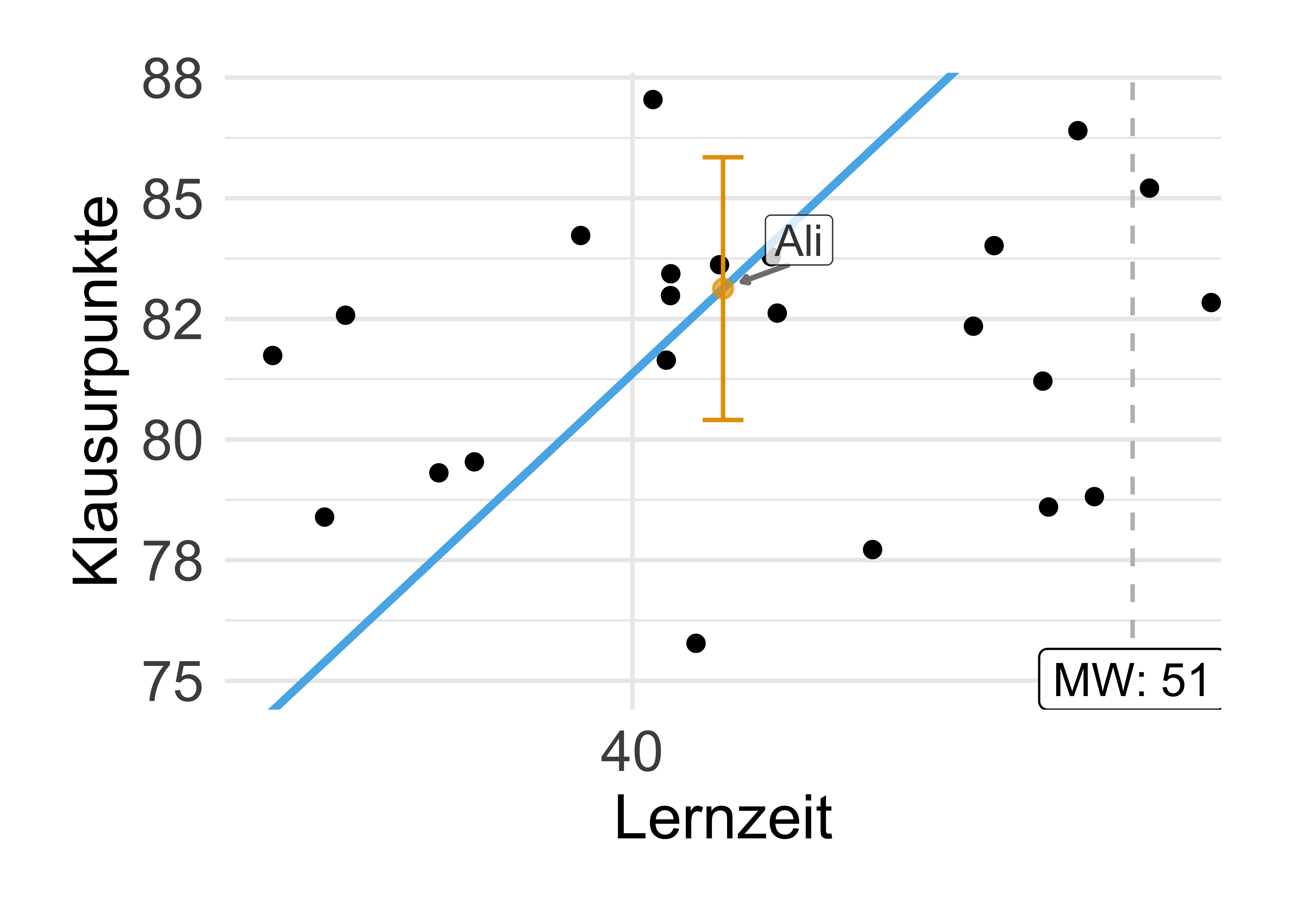 - Vorhersagen: Wenn eine Person, Mr. X, 100 Stunden auf die Statistikklausur lernen, welche Note kann diese Person dann erwarten?